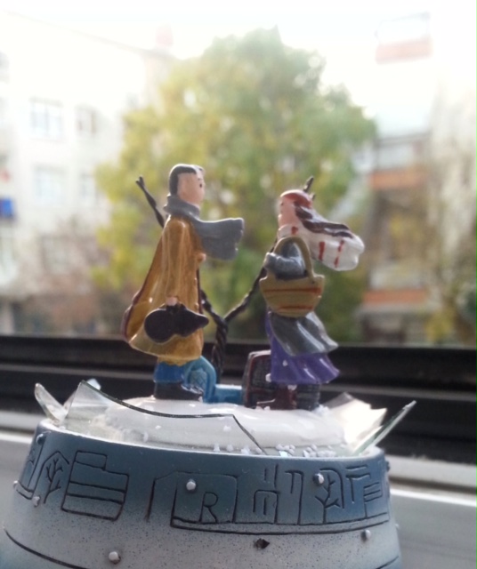 Kar küreyi. Renkli simler küreyi salladığınızda kavanozun içinde hareket etmesini istediğiniz şey. Kurduğunuzda çalan müzik gerçekten çok güzel. Kürenin içindeki kompozisyon çok güzel küreyi çevirdiğinizde kar efekti çok uzun sürmüyor. By kucukkalem with 252 reads.