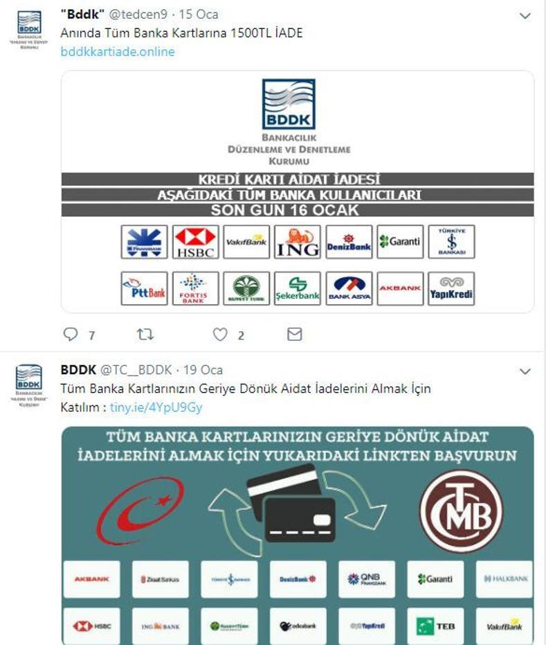Kredi kartı aidatı iadesi yaptığını iddia eden sosyal medya hesaplarına inanmayın.